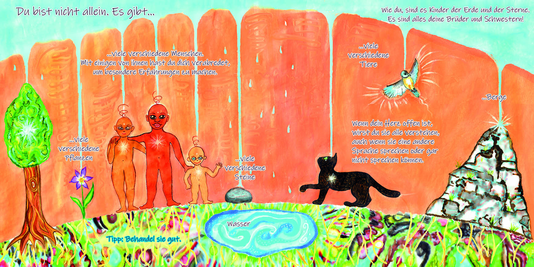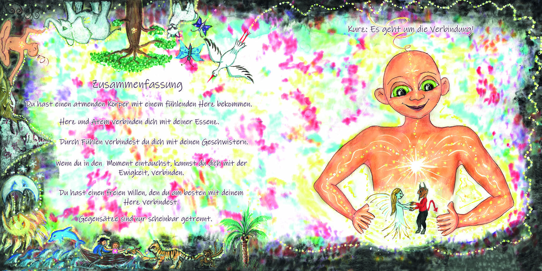 In 10 Minuten hat man es durchgelesen und will dann gleich noch mal, weil es schon zu Ende ist. Die Hintergrundenergie ist klar. Du bist hier herzlich willkommen, was auch immer die Welt dir erzählt. Die Erde wollte dich, sonst hättest du keinen Körper bekommen! Du atmest, das ist großartig und du hast ein Herz bekommen, also allerbeste Voraussetzungen.